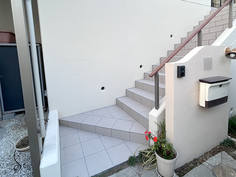 そこで、階段タイル張りと塀の塗装をご提案。